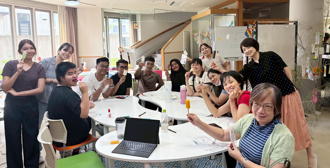 夏休みはいろいろな国の子どもが遊びに来てくれています。午前は宿題やそれぞれの課題をしたり、自由に遊んだりしています。午後はレクリエーション活動です。英語レッスン、英語でクッキング、おりがみ、魚釣り...